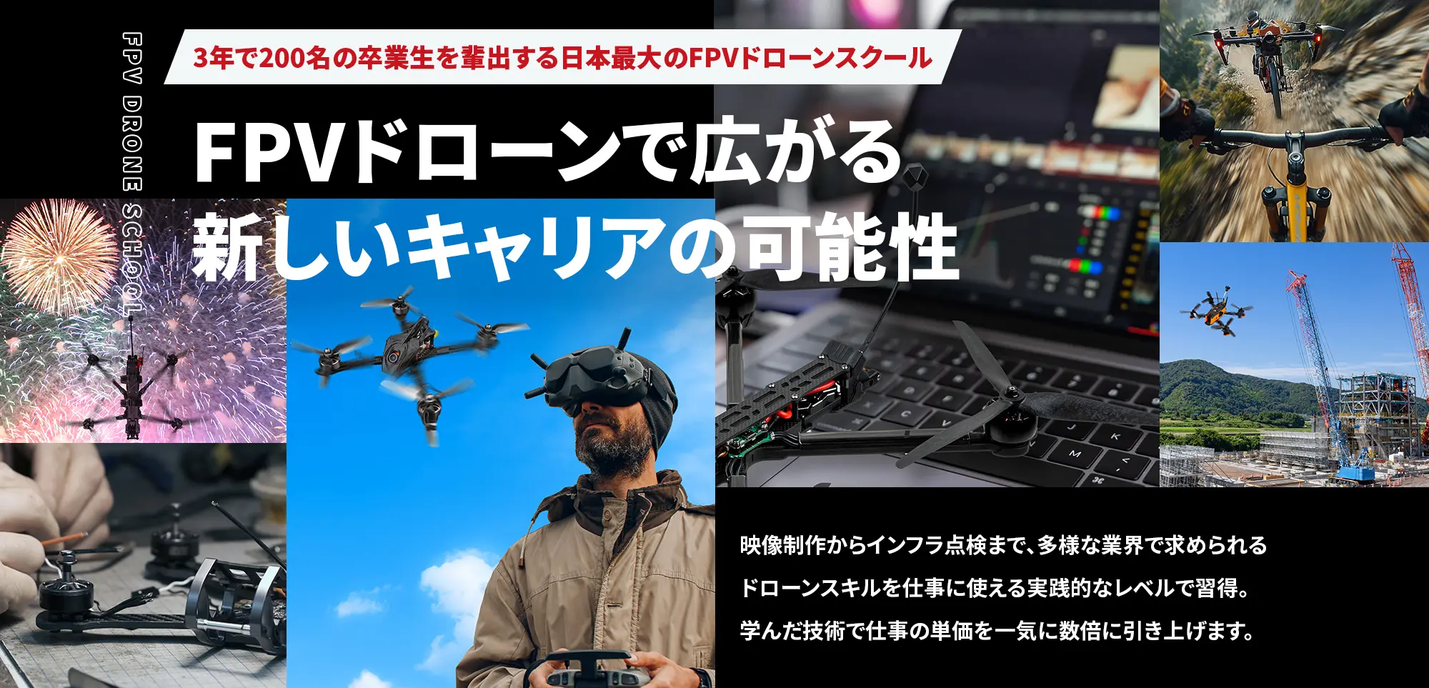 いち早くFPVドローン撮影をマスターすることで、講師としての道も開け、ワンランク上のステージで活躍することができます。